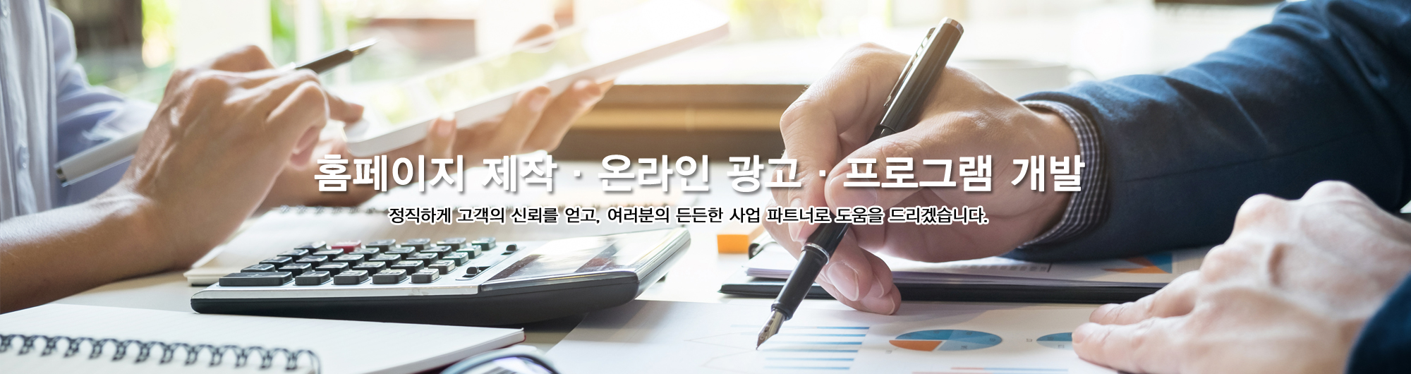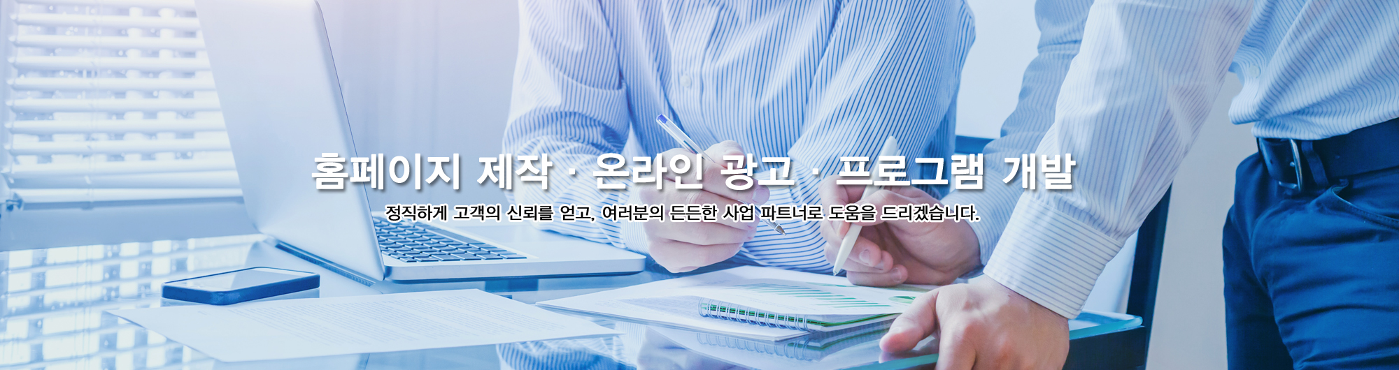 홈페이지 제작 홈페이지 제작 전문 기업으로 귀사에 최적화된 홈페이지를 제작해 드릴 수 있습니다. 프로그램 개발 프로그램 개발로 업무 효율을 높이고 귀사에 맞는 맞춤 프로그램 개발이 가능합니다. 온라인 광고 빠른 홍보와 가격 대비 높은 효과를 경험할 수 있는 온라인 광고를 도와드리겠습니다. 유지관리 서비스 홈페이지나 개발된 프로그램을 추가 수정을 합리적 비용으로 유지관리해 드립니다. 070-4670-8651 상담 및 영업시간 평일 09:00 ~ 18:00 상담신청 개인정보활용동의보기 빠른상담신청